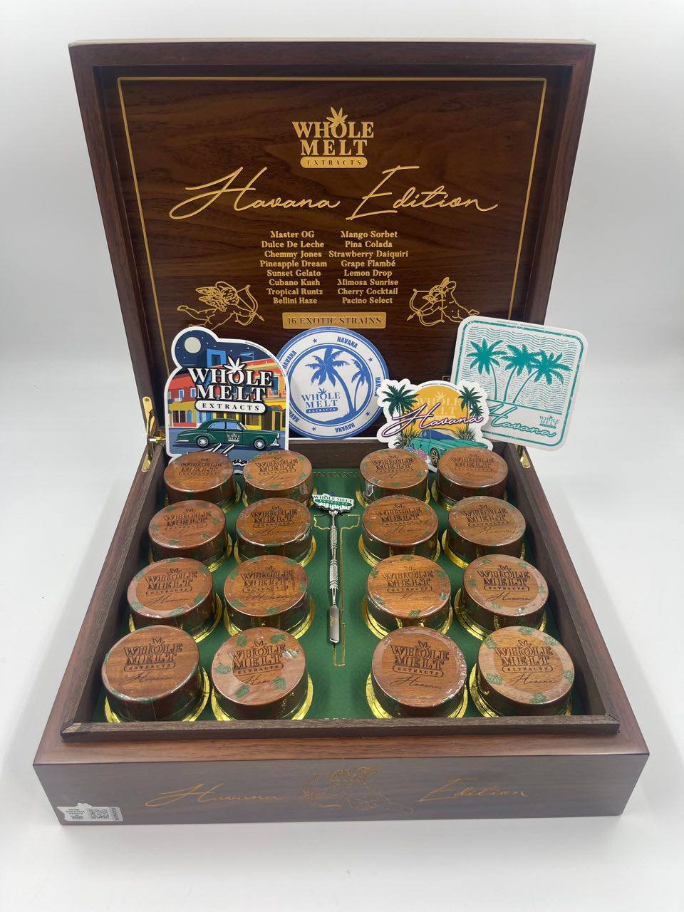 Whole Melts Havana Edition is packaged in child-resistant, airtight containers that protect the product from light, air, and moisture, preserving its potency and freshness. The packaging often includes detailed labeling with cannabinoid content, terpene profiles, batch numbers, and lab testing information to ensure transparency and consumer confidence.